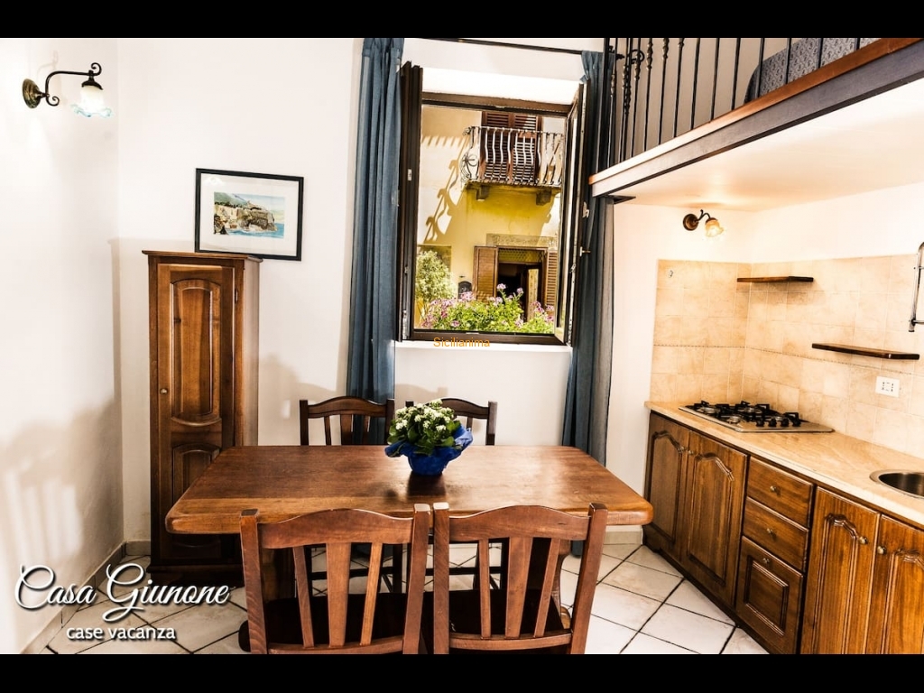 Casa Giunone si presenta come un ampio monolocale soppalcato al piano terra e può ospitare max 3 persone.